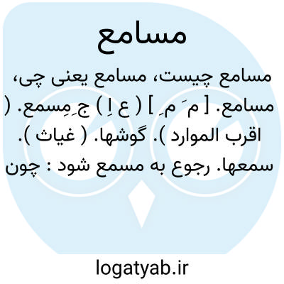 ( اسم ) جمع مسمع و مسمعه گوشها: و از اطراف وجوانب مردم جامع غلغل. دعا و ثنای آن حضرت بمسامع سکان صوامع عالم بالارسانید.
