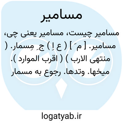 ( اسم ) جمع مسمار میخهای آهنین: سیل از اطراف عیون بر طبقات ز جاجی افتاده و مسام جلد زمین بمسامیر جلیدی درهم دوخته..