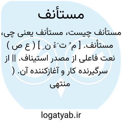 ( اسم ) ۱ - آغاز کننده از سرگیرنده. ۲- کسی که در محکمه ای مغلوب شده مرافع. خود را در محکم. بالاتر از سر گیرد استیناف دهنده جمع: مستانفین.