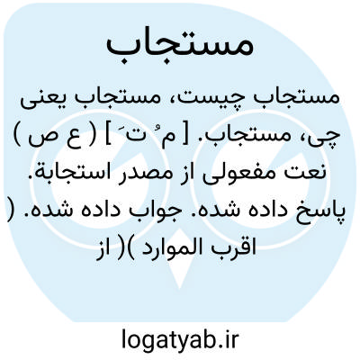 مستجاب. [ م ُ ت َ ] ( ع ص ) نعت مفعولی از مصدر استجابة. پاسخ داده شده. جواب داده شده. ( اقرب الموارد )( از غیاث ). رجوع به استجابة شود. || پذیرفته شده دعا و برآورده شده حاجت. ( اقرب الموارد ). قبول کرده شده. ( غیاث ) ( آنندراج ). مقبول. پذیرفته. انجام یافته. برآورده. درگیر شده. روا. برآمده: