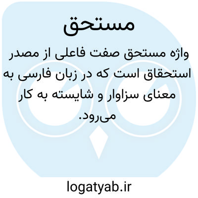 ( اسم ) استحقاق دارنده درخور شایسته: مستحق نکال و تعذیب و مستوجب تشدید و تادیب ٠٠٠ توضیح در تداول بصیغ. اسم مفعول تلفظ شود.