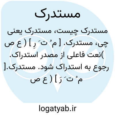 ( اسم ) ۱ - تدارک شده جبران شده. ۲ - رفع تو هم شده. ۳ - ذیلی بر کتاب یا رساله یامقاله که در آن بعض نکات شرح شود. ۴ - استدراک در فن استیفائ عبارت بود از تفاوتی که بهنگام مقابل. نسخ. مشرف بانسخ. عامل ابر اثر فوت یا غیبت کسی که محصول یا مزروعی باید عاید وی گردد حاصل میگردیده و بعبارت دیگر چون کسی که باید از محصول یا مزروع بهره مند گردد در میان نبوده آنچه بوی تعلق میگرفته صرف. پرداخت کننده می گردیده و این بظاهر مستدرک نامیده میشده است.