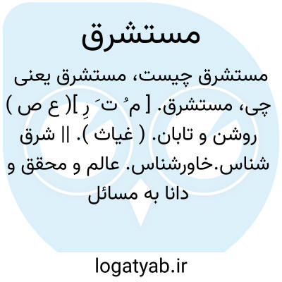 مستشرق. [ م ُ ت َ رِ ]( ع ص ) روشن و تابان. ( غیاث ). || شرق شناس.خاورشناس. عالم و محقق و دانا به مسائل مشرق زمین.