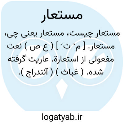 مستعار. [ م ُ ت َ ] ( ع ص ) نعت مفعولی از استعارة. عاریت گرفته شده. ( غیاث ) ( آنندراج ). عاریة. ( منتهی الارب ). عاریت خواسته. ( دهار ). عاریت شده و وام گرفته شده. ( ناظم الاطباء ). عاریتی. رجوع به استعارة شود: