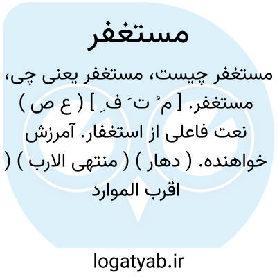 مستغفر. [ م ُ ت َ ف ِ ] ( ع ص ) نعت فاعلی از استغفار. آمرزش خواهنده. ( دهار ) ( منتهی الارب ) ( اقرب الموارد ). رجوع به استغفار شود.