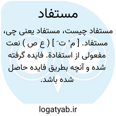 مستفاد. [ م ُ ت َ ] ( ع ص ) نعت مفعولی از استفادة. فایده گرفته شده و آنچه بطریق فایده حاصل شده باشد. ( غیاث )( آنندراج ). فائده گرفته. سودبرده. منتفع گرفته شده. حاصل شده. رجوع به استفادة شود. || مقصود ومراد و خواهش. ( ناظم الاطباء ). مفاد. معنی. مدلول.