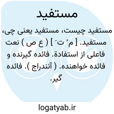 ( اسم ) فایده گیرنده سود خواهنده بهره مند: ومواعظ بسیار لایق هر حکایت در و زیادت گردانید تامستفیدان ادب... را بمطالع. آن رغبت زیادت گردد. جمع: مستفیدین.