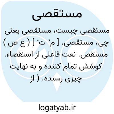 مستقصی. [ م ُ ت َ ] ( ع ص ) مستقص. نعت فاعلی از استقصاء. کوشش تمام کننده و به نهایت چیزی رسنده. ( از منتهی الارب ) ( از اقرب الموارد ). رجوع به استقصاء شود.