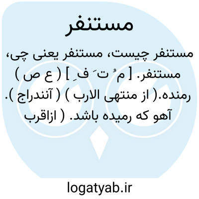 مستنفر. [ م ُ ت َ ف ِ ] ( ع ص ) رمنده.( از منتهی الارب ) ( آنندراج ). آهو که رمیده باشد. ( ازاقرب الموارد ). نافر. هارب. رمو. نفور. منهزم. || آهو که رم داده شده باشد ( فعل آن لازم و متعدی است ). ( از اقرب الموارد ). رجوع به استنفار شود.