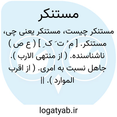 مستنکر. [ م ُ ت َ ک َ ] ( ع ص ) امری که مجهول باشد. ( از اقرب الموارد ). بعید. ناشناخته: