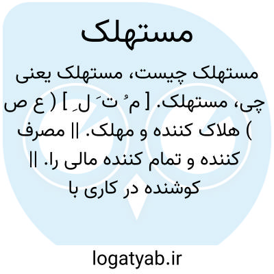 مستهلک. [ م ُ ت َ ل ِ ] ( ع ص ) هلاک کننده و مهلک. || مصرف کننده و تمام کننده مالی را. || کوشنده در کاری با شتاب. ( از اقرب الموارد ). و رجوع به استهلاک شود.