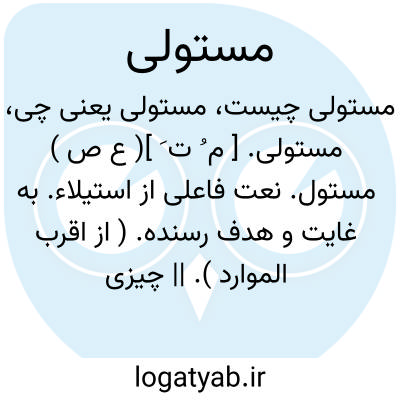 (اسم ) ۱- آنکه برچیزی کاملا تسلط یابد چیره شونده دست یافته: پس واجب آید که پیش از آفریدن عالم بر عرش مستول نبود. ۲ - الفاظی که در حد اعتدال باشند و از رکاکتی که درسخن عوام باشد دور بوند و در تکلف بحدی نباشد که آنرا از محاورات خواص شمرند.