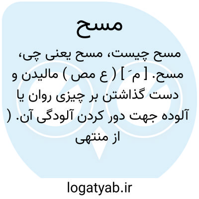 معنی مَسْحاً: مسح کردن - لمس نمودن (کلمه مسح به معنای کشیدن دست و یا هر عضو دیگری به عنوان لمس کننده به لمس شونده، بدون هیچ حائلی و با اختیار است،. مسحت الشیء و مسحت بالشیء هر دو به یک معنا است با این تفاوت که اگر بدون حرف با استعمال شود، و شیء ملموس را مفعول...