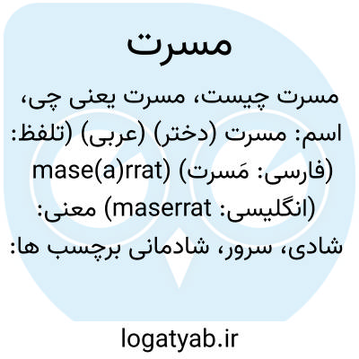 اسم: مسرت (دختر) (عربی) (تلفظ: mase(a)rrat) (فارسی: مَسرت) (انگلیسی: maserrat)