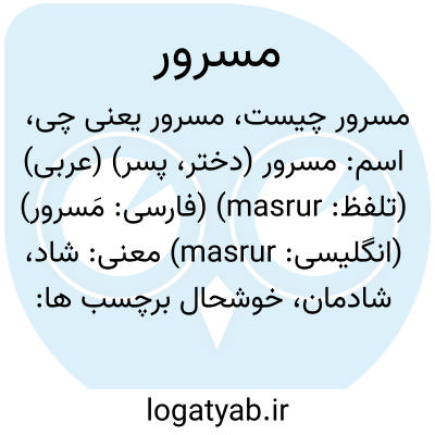 اسم: مسرور (دختر، پسر) (عربی) (تلفظ: masrur) (فارسی: مَسرور) (انگلیسی: masrur)