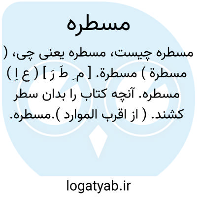 ( اسم ) ۱ - خط کش: آن را کن آفرین که چنین قصرت آفرید بی خشت و چوب و رشته و پرگار ومسطره. ( ناصر خسرو ) جمع: مساطر. ۲ - نمون. متاع.