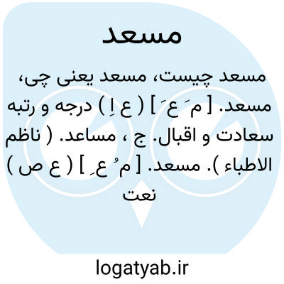 ( اسم ) سعادتمند نیکبخت: خواجه بسان غضنفریست کجاهست بستدن و دادنش دودست مسعد. ( منوچهری ) توضیح تسعید در قاموسهای معتبر عربی نیامده.