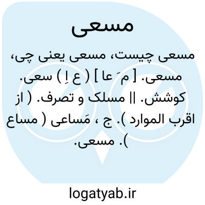 (مَ عا ) [ ع. ] (اِ. ) ۱ - سعی، کوشش. ۲ - مسلک، راه. ۳ - تصرف.