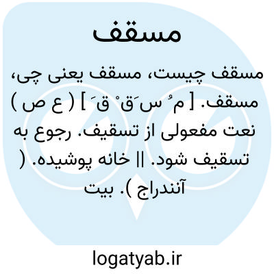 مسقف. [ م ُ س َق ْ ق َ ] ( ع ص ) نعت مفعولی از تسقیف. رجوع به تسقیف شود. || خانه پوشیده. ( آنندراج ). بیت سقف دار. ( از اقرب الموارد ). خانه آسمانه کرده. ( دهار ). صاحب سقف. باسقف. با آسمانه. آسمانه دار. پوشیده. سرپوشیده. پوشانیده. باپوشش.