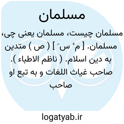 ( صفت ) آنکه بدین اسلام متدین است جمع: مسلمانان: مسلمانان. مراوقتی دلی بود که با وی گفتمی گر مشکلی بود. ( حافظ ) توضیح ابن عبد ربه گوید: العرب تسمی العجم اذا اسلم: المسلمانی... و این کلم. تهجینی بوده که تازیان بر عجمان نومسلمان اطلاق میکردند ولی بتدریج این وجه از میان رفته و همان معنی مسلم بدون جنب. تهجینی باقی مانده. جمع آن در عربی بصورت مسالمه و مسلمه آمده.