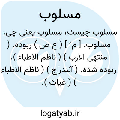 مسلوب. [ م َ ] ( ع ص ) ربوده. ( منتهی الارب ) ( ناظم الاطباء ). ربوده شده. ( آنندراج ) ( ناظم الاطباء ) ( غیاث ). بربوده. سلب شده. ( ناظم الاطباء ). مقلوع. منترع. مأخوذ. منسلب. مختلس.