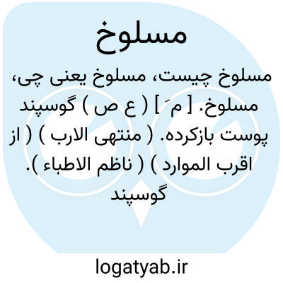 ( اسم ) ۱ - حیوانی که پوستش را کنده باشند پوست کنده: در حال خداوند تعالی حمالی را بدرخان. وی فرستاد با یک خروار آرد و یک حمال دیگر با یک مسلوخ و یک حمال دیگر باروغن و انگبین.