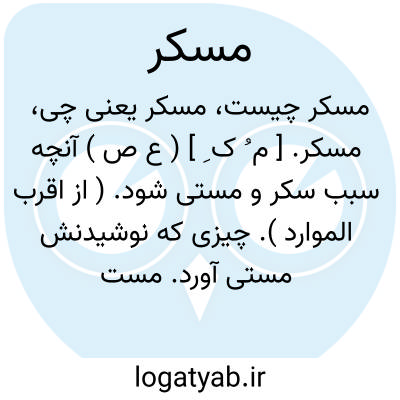 مسکر. [ م ُ س َک ْ ک َ ] ( ع ص ) نعت مفعولی از تسکیر. رجوع به تسکیر شود. || مخمور. ( از اقرب الموارد ). خمارزده و مست. ( منتهی الارب ). || مجازاً به عنوان تأکید در غضب به کار رود. ( ازیادداشت مرحوم دهخدا ). سخت خشمناک چنانکه نداند چه میگوید و چه میکند: قال احمدبن سعید مؤدب بن المعتز:... فلما اتصل الخبر بی، جلست فی منزلی غضباناً مسکراً. ( معجم الادباء چ مارگلیوث ج 1 ص 133 ).