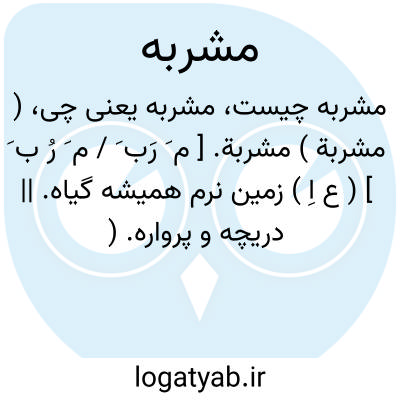( مشربة ) مشربة. [ م َ رَب َ / م َ رُ ب َ ] ( ع اِ ) زمین نرم همیشه گیاه. || دریچه و پرواره. ( منتهی الارب ) ( آنندراج ) ( ناظم الاطباء ) ( از اقرب الموارد ). || پیش دالان. ( منتهی الارب ) ( آنندراج ) ( ناظم الاطباء ). صفه. ( اقرب الموارد ). || یک مشت آب. ( آنندراج ) ( ناظم الاطباء ). غرفة. ( اقرب الموارد ). ج، مشارب. ( ناظم الاطباء ). || آبخور بر جوی، یا عام است. ج، مشارب. ( منتهی الارب ) ( آنندراج ) ( از اقرب الموارد ).