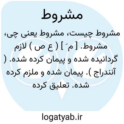 ( اسم ) ۱ - شرط کرده شده. ۲ - چیزی که متعلق بچیزی دیگر شده. یا مشروط براینکه ( آنکه ). بشرط اینکه باین شرط: او را تکلیف منصب عالی وکالت دیوان اعلی ونیابت نفس همایون کرده مشروط بر آنکه منصب خلیفه الخلفایی بدیگری داده شود.