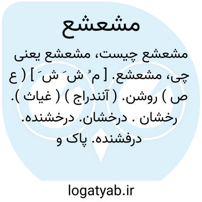 مشعشع. [ م ُ ش َ ش َ ] ( ع ص ) روشن. ( آنندراج ) ( غیاث ). رخشان. درخشان. درخشنده. درفشنده. پاک و روشن، که کثیف نباشد. ( یادداشت به خط مرحوم دهخدا ).