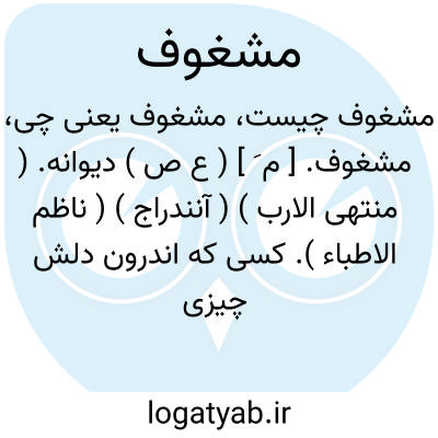 مشغوف. [ م َ ] ( ع ص ) دیوانه. ( منتهی الارب ) ( آنندراج ) ( ناظم الاطباء ). کسی که اندرون دلش چیزی رسیده باشد. ( غیاث ). شیفته و دیوانه در دوستی و عشق. ( از اقرب الموارد ): زنبور انگبین بر نیلوفر نشیند وبه رایحه معطر و نسیم معنبر آن مشغول و مشغوف. ( کلیله و دمنه چ قریب ص 92 ).