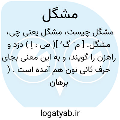 مشگل. [ م َ گ ُ ]( ص، اِ ) دزد و راهزن را گویند، و به این معنی بجای حرف ثانی نون هم آمده است. ( برهان ) ( آنندراج ). دزد و راهزن. ( ناظم الاطباء ).