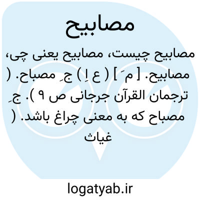 ( اسم ) جمع مصباح چراغها: و تحیت فراوان بر یاران و اهل بیت او که مصابیح ممالک تقوی و مفاتیح ابواب ارشاد و هدی بودند...