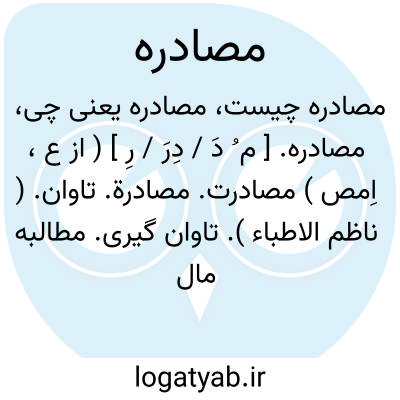 ۱- ( مصدر ) تاوان گرفتن جریمه کردن ۲- خون کسی را بمال او فروختن. ۳- مطالبه کردن مواخذه کردن. ۴- ( اسم ) تاوان گیری اخذ جریمه: جمله شهر در فرمان تست مصادره و مطالب. شهر بخواست تو می باشد نه بنیک و نه ببد از تو باز خواستی نکردهایم. ۵ - مواخذه بازخواست باز گیری. ۶ - عبارت از مبدا تصدیقی خاصی است که بینه الثبوت باشد بنفسه ومتعلم از معلم با شک وعناد و انکار میگیرد و وجه تسمی. آن به مصادره از آن جهت است که منشا صدور و اثبات مسایل است. یا مصادره به ( بر ) مطلوب. عبارت از قرار دادن مدعی است عین دلیل یعنی دلیل را مدعی قرار دادن.