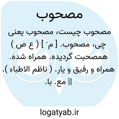 ۱- ( اسم ) هم صحبت گردیده همراه شده ۲- یار رفیق. ۳- همراه مقرون: رقیمجات مفصل مصحوب ذوالفقار بیگ رسیده بود...