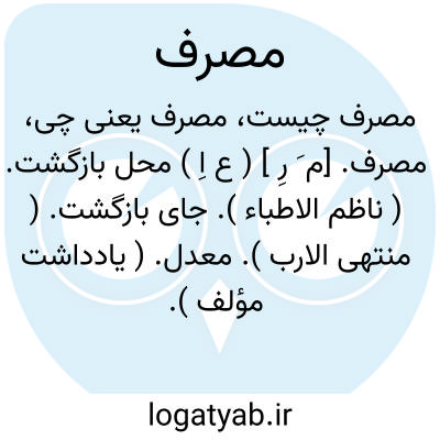 مصرف. [م َ رِ ] ( ع اِ ) محل بازگشت. ( ناظم الاطباء ). جای بازگشت. ( منتهی الارب ). معدل. ( یادداشت مؤلف ). || جای گریز. ( ترجمان القرآن جرجانی ص 89 ). || خلاص و رهایی از بدبختی. ( ناظم الاطباء ). ج، مصارف. || در عبارت زیر از فارسنامه جای بازگرداندن آب و به اصطلاح آب برگردان معنی می دهد: پس مقدران را و صانعان رابیاورد و مالهای بسیار بذل کرد تا مصرفهای آب بساختند از چپ و راست رود کر. ( فارسنامه ابن البلخی ص 151 ). || اسم ظرف به معنی جای خرج کردن. ( آنندراج ). محل صرف و خرج. ج، مصارف. ( ناظم الاطباء ). جای خرج کردن و به کار بردن. محل هزینه کردن: