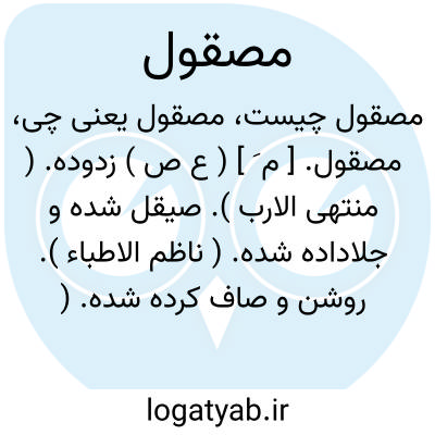 ( اسم ) صیقل زده زنگ زدوده جلا داده شده ( آیینه شمشیر و جز آنها ): دل از جواهر مهرت چو صیقلی دارد بود ز زنگ حوادث بر آینه مصقول. ( حافظ )