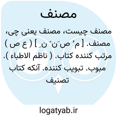 مصنف. [ م ُ ص َن ْ ن ِ ] ( ع ص ) مرتب کننده کتاب. ( ناظم الاطباء ). مبوب. تبویب کننده. آنکه کتاب تصنیف می کند و ترتیب می دهد. تصنیف کننده و نویسنده کتاب. ( ناظم الاطباء ). مطلق تصنیف کننده. ( آنندراج ). نویسنده کتاب. نگارنده جزوه و رساله و کتاب. معمولاً بین مصنف و مؤلف فرق گذارند بدین معنی که مصنف کسی را گویند که همه یا بیشتر مطالب و محتوای کتاب اندیشه خود او و به ابتکار خود اوست ولی مؤلف کسی است که همه یا بیشتر مطالب را از دیگران گرد آورد و گاهی نیز بین آن دو فرقی نگذارند چنانکه درگذشته نیز چنین بوده و سعدی در گلستان مصنف را با مؤلف، و تصنیف را با تألیف مترادف آورده است: بیدپای برهمن که مصنف اصل است از جمله اولیا و وزرای او بوده است. ( کلیله و دمنه ). رسمی قدیم است... که مؤلف و مصنف در تشبیب سخن و دیباچه کتاب طرفی از ثنای مخدوم و شمتی از دعای ممدوح اظهار کند. ( چهارمقاله ص 3 ).