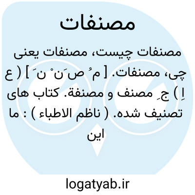 مصنفات. [ م ُ ص َن ْ ن َ ] ( ع اِ ) ج ِ مصنف و مصنفة. کتاب های تصنیف شده. ( ناظم الاطباء ): ما این سوءالات را پیش از این یاد کرده ایم اندر مصنفات خویش چون کتاب عجایب الصنعة و کتاب زادالمسافرین. ( جامعالحکمتین ناصرخسرو ص 306 ). و رجوع به مصنفة و مصنف شود.