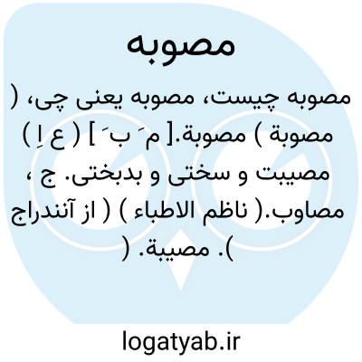 ( مصوبة ) مصوبة.[ م َ ب َ ] ( ع اِ ) مصیبت و سختی و بدبختی. ج، مصاوب.( ناظم الاطباء ) ( از آنندراج ). مصیبة. ( منتهی الارب ).