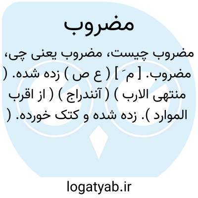 ( اسم ) ۱ - زده شده کتک خورده ۲- سکه زده مسکوک. ۳- عددی که در عدد دیگر ضرب شده و بتعبیر دیگر بتعدادی تکرار شده مقابل مضروب فیه بس شمرده مثلا در ۳۵ ۴ ۱۴٠ عدد ۳۵ مضروب است و ۴ مضروب فیه.
