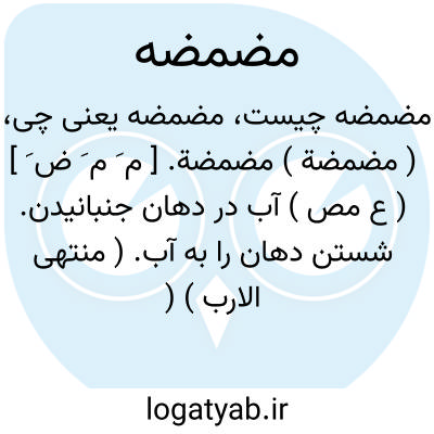 ( مضمضة ) مضمضة. [ م َ م َ ض َ ] ( ع مص ) آب در دهان جنبانیدن. شستن دهان را به آب. ( منتهی الارب ) ( از اقرب الموارد ). جنبانیدن آب در جمله دهان. ( تاج المصادر بیهقی ). آب در دهان جنبانیدن. ( آنندراج ). آب در دهان جنبانیدن و شستن دهان را به آب. شستشوی دهان با آب و مانند آن. ( ناظم الاطباء ). گردانیدن آب در دهان و شست و شوی آن را. گردانیدن آبی یا مایعی دیگر در دهان برای شست و شوی دهان و دندانها. گردانیدن آب در دهان بی فرو بردن. گردانیدن آب خارجی دردهان. غرغره کردن. ( از یادداشت به خط مرحوم دهخدا ). || شستن آوند و جز آن را. ( منتهی الارب ) ( آنندراج ). شستن ظرف و جز آن را. ( ناظم الاطباء ). || ما مضمضت عینی بنوم؛ ای ما نمت. ( منتهی الارب ) ( اقرب الموارد )؛ یعنی نخوابیدم. ( ناظم الاطباء ).