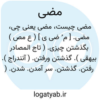 مضی ٔ. [ م ُ ضی ی ْٔ / م ُ ض ِءْ ] ( ع ص ) ( از «ض وء» ) روشن شونده و روشن کننده، اسم فاعل از «اضأت » که لازم و متعدی است. ( غیاث ). روشن و تابان و درخشان و روشنی دهنده. ( ناظم الاطباء ). فروزان. روشن. روشن کرده. ( یادداشت به خط مرحوم دهخدا ):