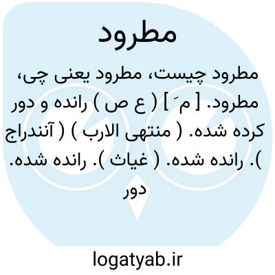 ( اسم ) رانده شده دور کرده: و در خلال این مباحث بمذاهب مخالفان خاص محمد بن زکریای رازی که مطرود و مغضوب متکلمان اسمعیلیه است سخت تاخته. جمع: مطرودین.