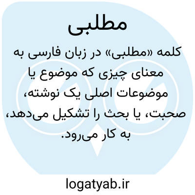 کلمه «مطلبی» در زبان فارسی به معنای چیزی که موضوع یا موضوعات اصلی یک نوشته، صحبت، یا بحث را تشکیل می‌دهد، به کار می‌رود. این واژه از ریشه «مطلب» گرفته شده که به معنی خواسته، موضوع یا هدف است. وقتی می‌گوییم «مطلبی»، معمولاً اشاره به یک موضوع، نکته یا محتوای خاص داریم که در یک متن یا گفتگو مطرح می‌شود. به عبارت ساده‌تر، این کلمه به هر چیزی گفته می‌شود که محتوای اصلی یا موضوع یک نوشته یا سخن را تشکیل می‌دهد.