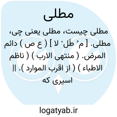 مطلی. [ م ُ طَل ْ لی ] ( ع ص ) آنکه قطران میمالد. || آنکه بیمارداری می کند. || دشنام دهنده. || سرودگوینده. ( ناظم الاطباء ).