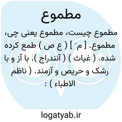 مطموع. [ م َ ] ( ع ص ) طمع کرده شده. ( غیاث ) ( آنندراج ). با آز و با رشک و حریص و آزمند. ( ناظم الاطباء ): و در دکان فلان طباخ خاتم خود را رهن مقداری طعام کردیم، مطموع آنکه به ارسال آن حکم فرمایند. ( از نامه ملک ظاهر بندقدار به ابقاخان از حبیب السیر، یادداشت به خط مرحوم دهخدا ).