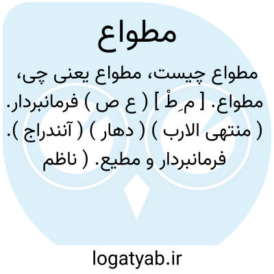 مطواع. [ م ِطْ ] ( ع ص ) فرمانبردار. ( منتهی الارب ) ( دهار ) ( آنندراج ). فرمانبردار و مطیع. ( ناظم الاطباء ). مطواعة. مطیع. ( اقرب الموارد ). بسیار فرمانبردار. سخت مطیع. ( یادداشت به خط مرحوم دهخدا ):