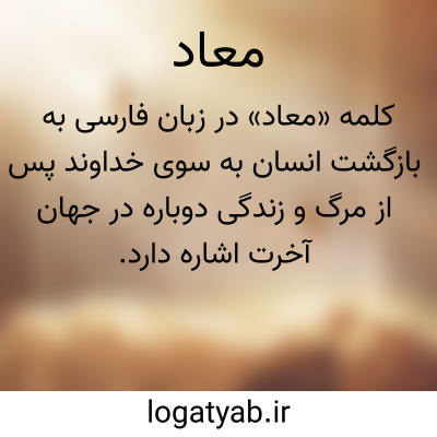 معنی: بازگشتن، عالم آخرت، ( در ادیان ) زنده شدن دوباره ی انسان بعد از مرگ تا در روز قیامت به اعمال او رسیدگی شود، ( در ادیان ) اعتقاد به زندگی دوباره، یکی از سه اصل اعتقادی مسلمان، ( در ادیان ) جهان آخرت، ( در ادبیات ) در بدیع آن است که پایان مصراع دوم به آغاز مصراع سوم باز می گردد، ( در قدیم ) محل بازگشت، جای بازگشت
