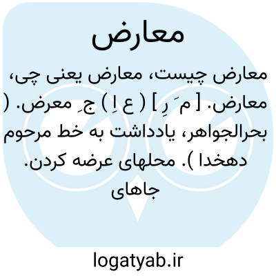 معارض. [ م ُ رِ ] ( ع ص ) مخالف و خصم و حریف و مدعی و مقابل. ( ناظم الاطباء ): تقریرمی کرد که تاش به دیلم التجا کرده است و به معارضان دولت پناهیده. ( ترجمه تاریخ یمینی چ 1 تهران ص 89 ).چون به حکایت ملک او رسیم ذکر رود که ملک و سریر و دیهیم پدر با چندان معاندو معارض از اقربا و برادران چگونه به دست آورد. ( تاریخ طبرستان ابن اسفندیار ). و رجوع به معارضه شود.